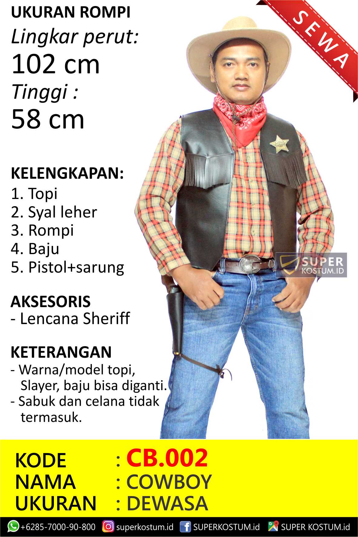 rental penyewaan sewa kostum Cowboy Koboi Pria Dewasa Laki-Laki Cowok Tema Baju Kostum Film action CB.002