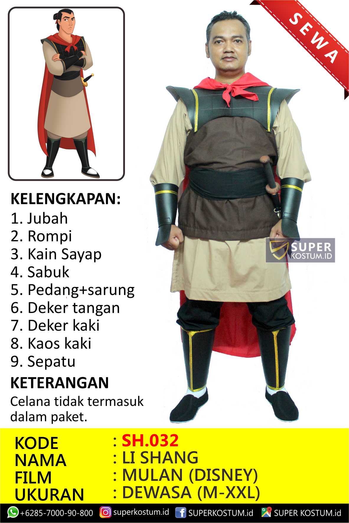 mulan, disney, sewa, rental, kostum, baju, Superhero, Film, Jagoan, Pahlawan,  SH.032, Cowok, Laki-Laki, Pria, coklat,