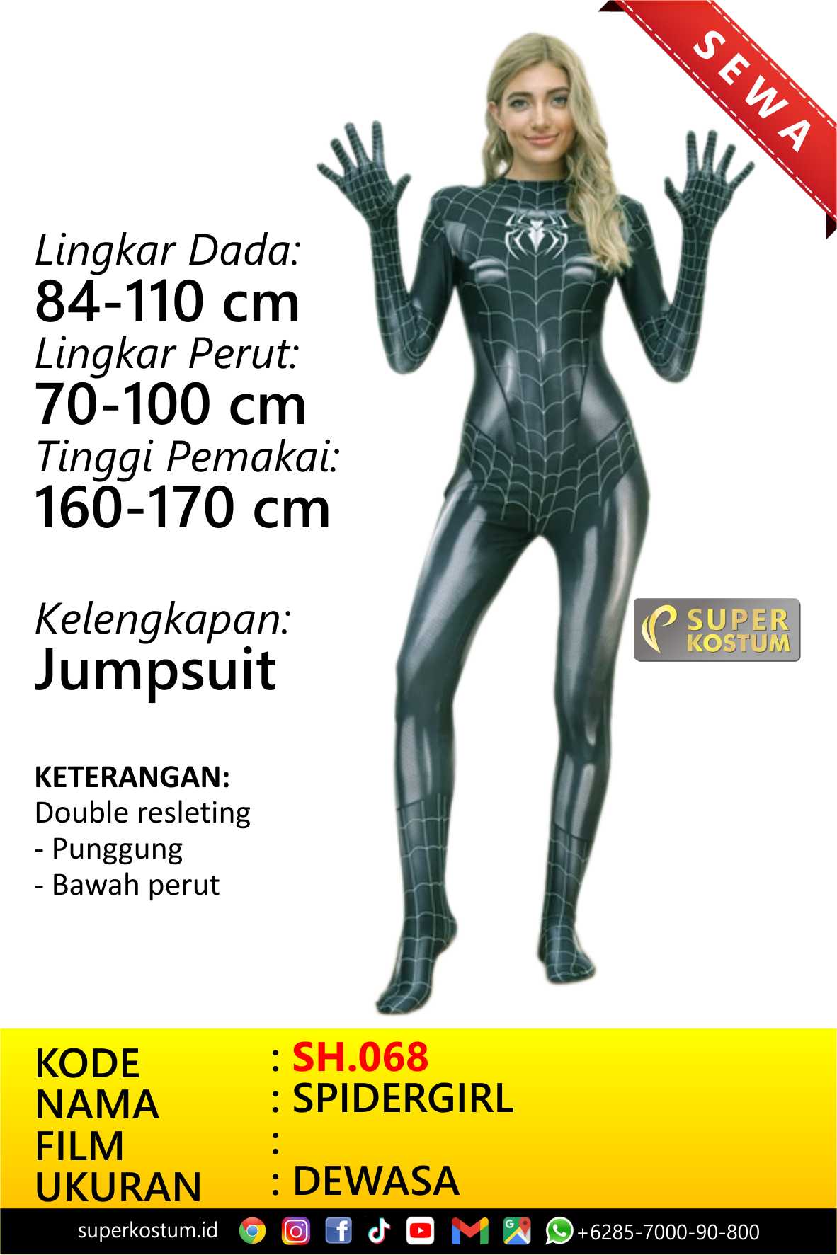 sewa kostum rental baju Superhero, Film, Jagoan, Pahlawan, Avengers, SH.068, Cewek, wanita, perempuan, hitam seksi hot, spidergirl spiderwoman spider girl