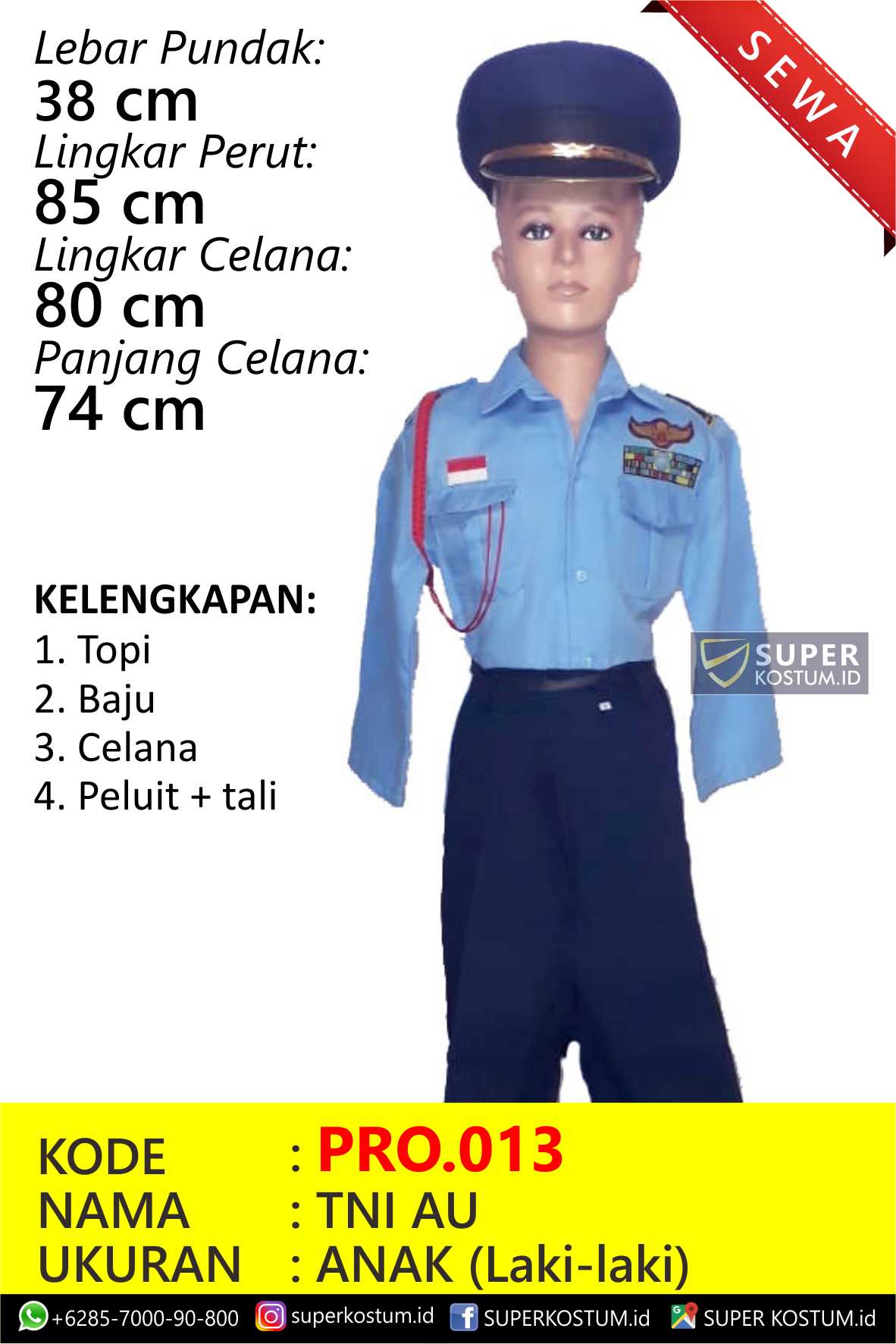 Baju, Kostum, Seragam, Pakaian, Anak, Profesi, Cita-Cita, Laki-Laki, Pria, Cowok angkatan udara biru hijab muslim, PRO.013